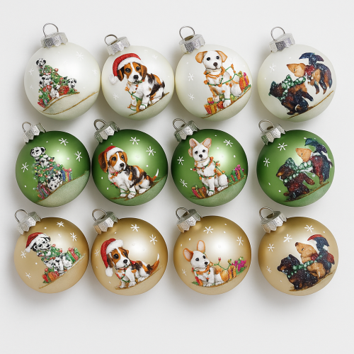 LIANOS Γυάλινες Χριστουγεννιάτικες Μπάλες Σέτ 12τεμαχίων , 12 Σχέδια 8cm 26207