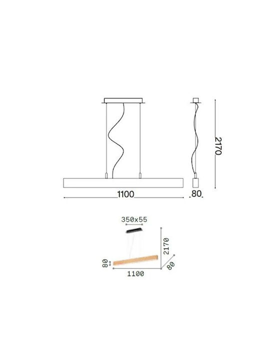 Φωτιστικό Οροφής - Ράγα Craft 284460 110x217cm LED 36W 3000K 3500Lm Natural Ideal Lux