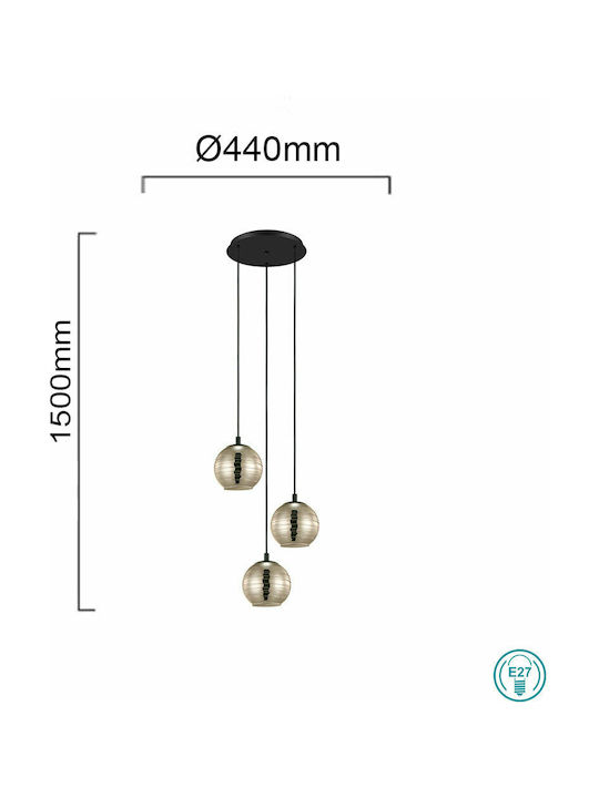 Eglo Lemorieta Μοντέρνο Κρεμαστό Φωτιστικό Τρίφωτο με Ντουί E27 σε Μπεζ Χρώμα 39685