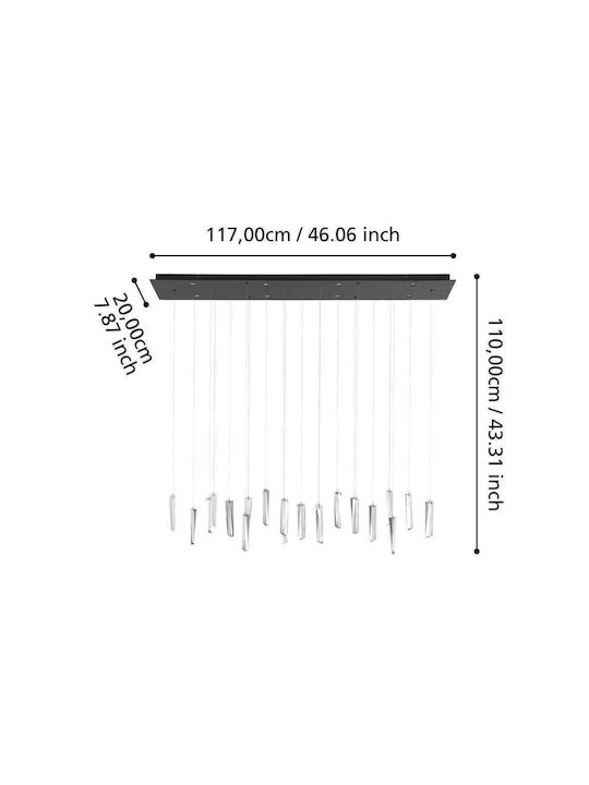 Eglo Sardenara Κρεμαστό Φωτιστικό LED με Θερμό Λευκό Φως Ράγα Μαύρο 117x20x110εκ. 390211
