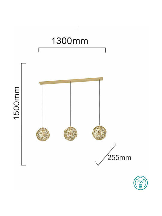 Eglo Skoura Μοντέρνο Κρεμαστό Φωτιστικό Τρίφωτο Ράγα με Ντουί E27 σε Χρυσό Χρώμα 39757
